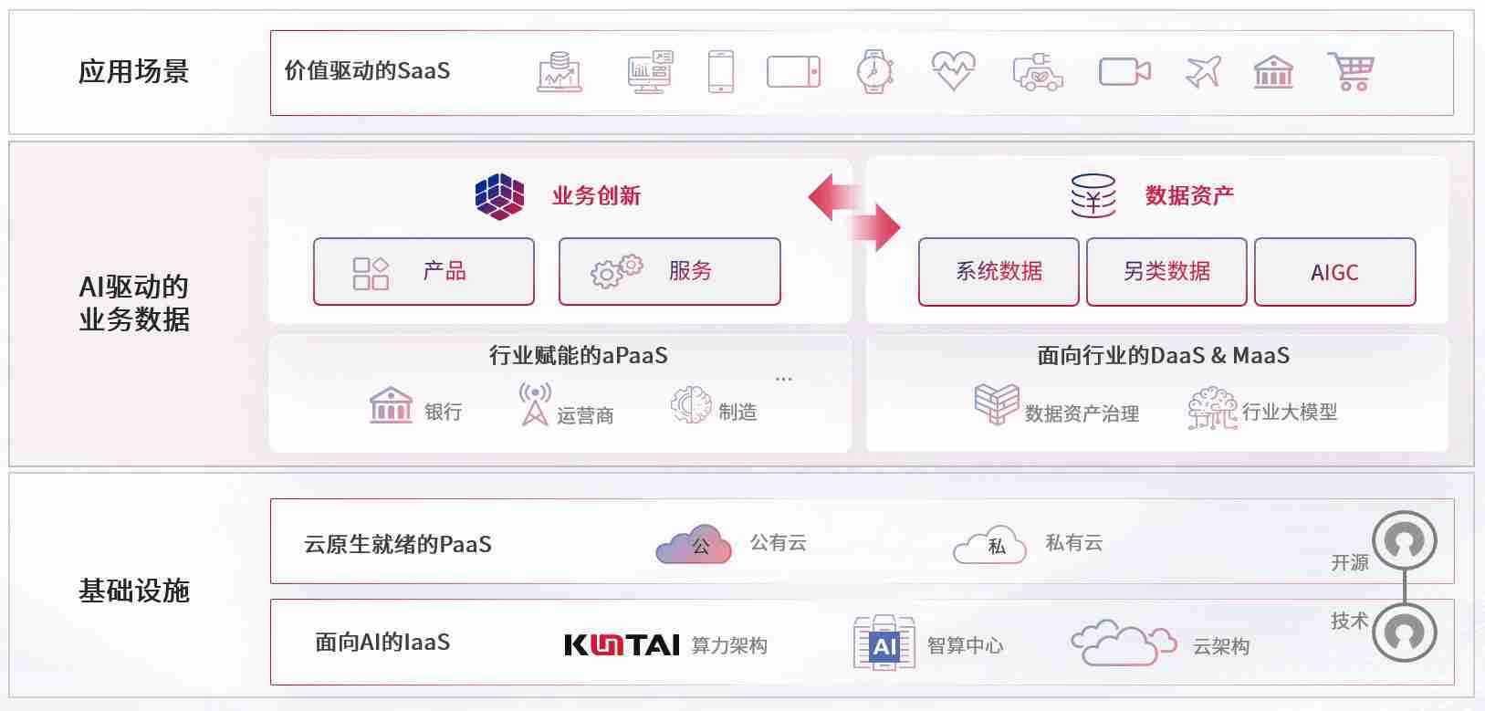 数字时代,,,,围绕企业数字化转型的关键要素,,,英国365上市公司数码开创性的提出数云融合战略和技术体系框架,,,着力在云原生、、数字原生、、AI原生和信创产业上架构产品和服务能力,,为处在不同数字化转型阶段的快消零售、、、汽车、、金融、、、、医疗、、、政企、、、教育、、、、运营商等行业客户提供泛在的敏捷IT能力和融合的数据驱动能力,,,,构建跨界融合创新的数字业务场景和新业务模式,,,,助力企业级客户建立面向未来的核心能力和竞争优势,,,全面推动社会的数字化、、、智能化转型升级。。